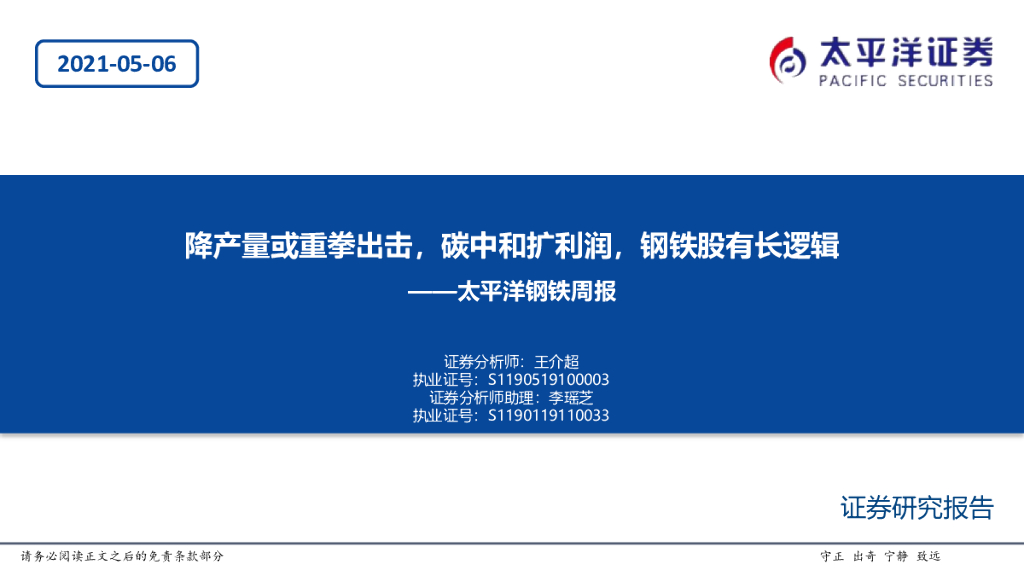 太平洋证券:钢铁周报:降产量或重拳出击,碳中和扩利润,钢铁股有长逻辑.pdf