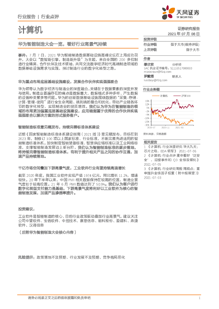 天风证券:计算机行业点评:华为智能制造大会一览,看好行业高景气持续.pdf