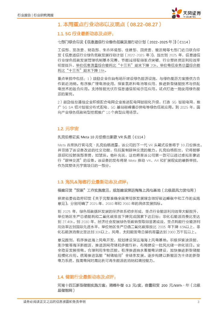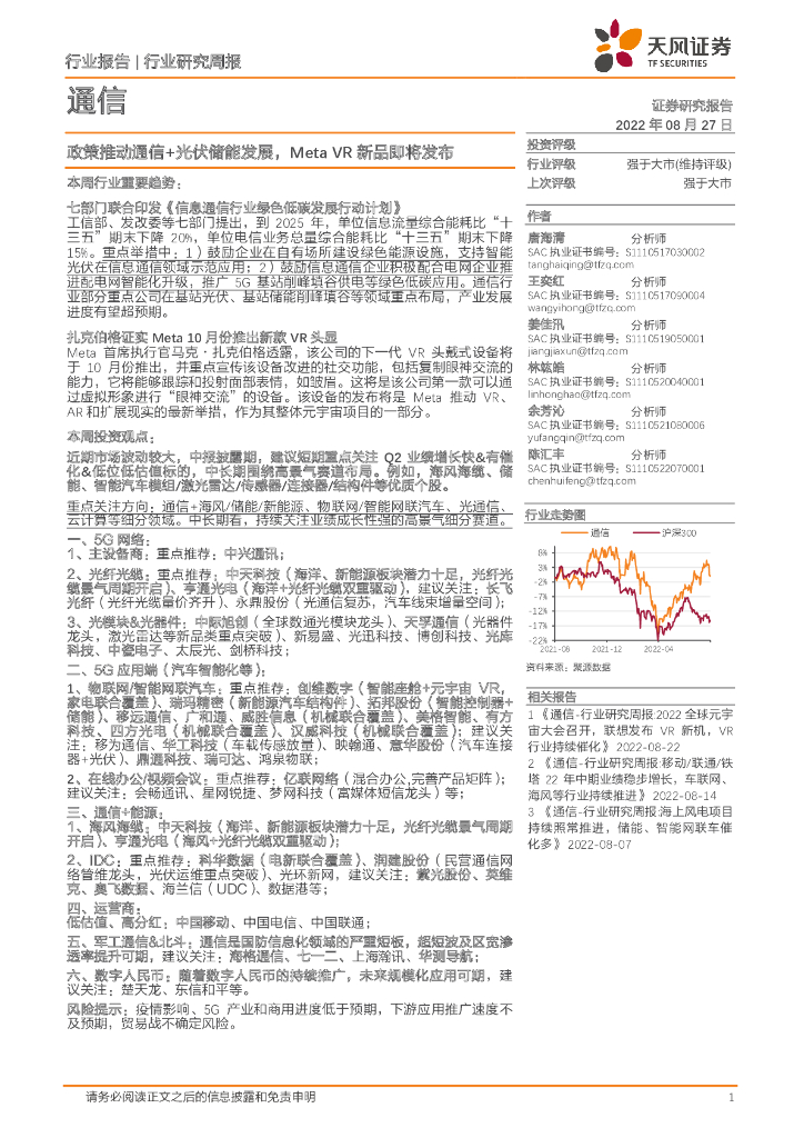 天风证券:通信行业研究周报:政策推动通信+光伏储能发展,Meta VR新品即将发布.pdf