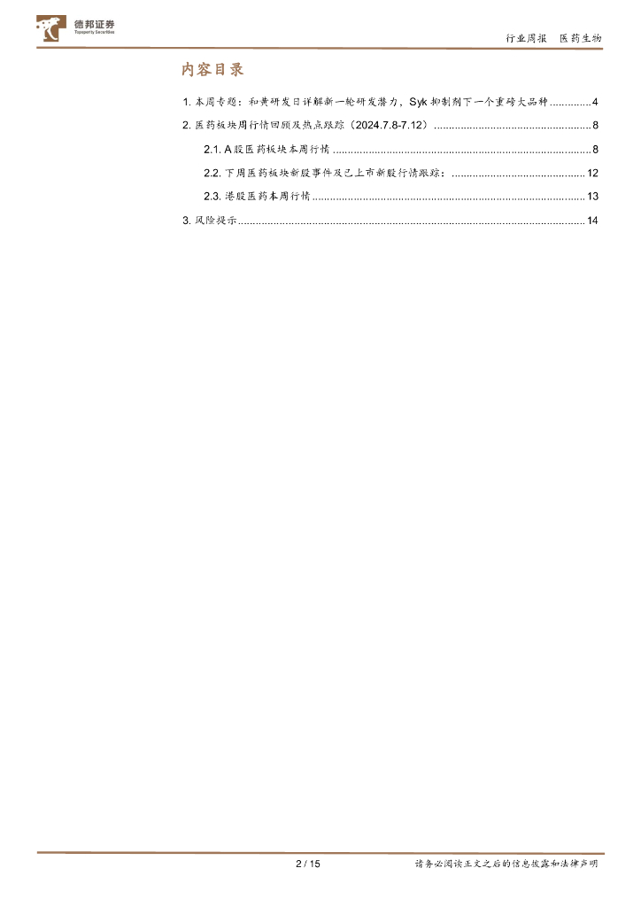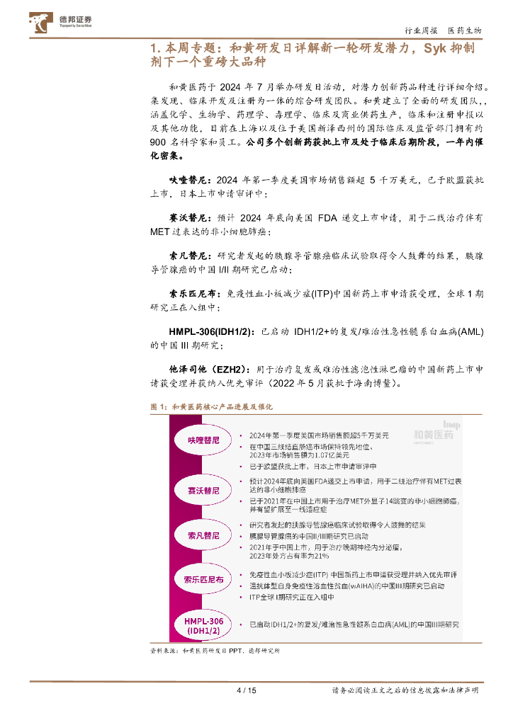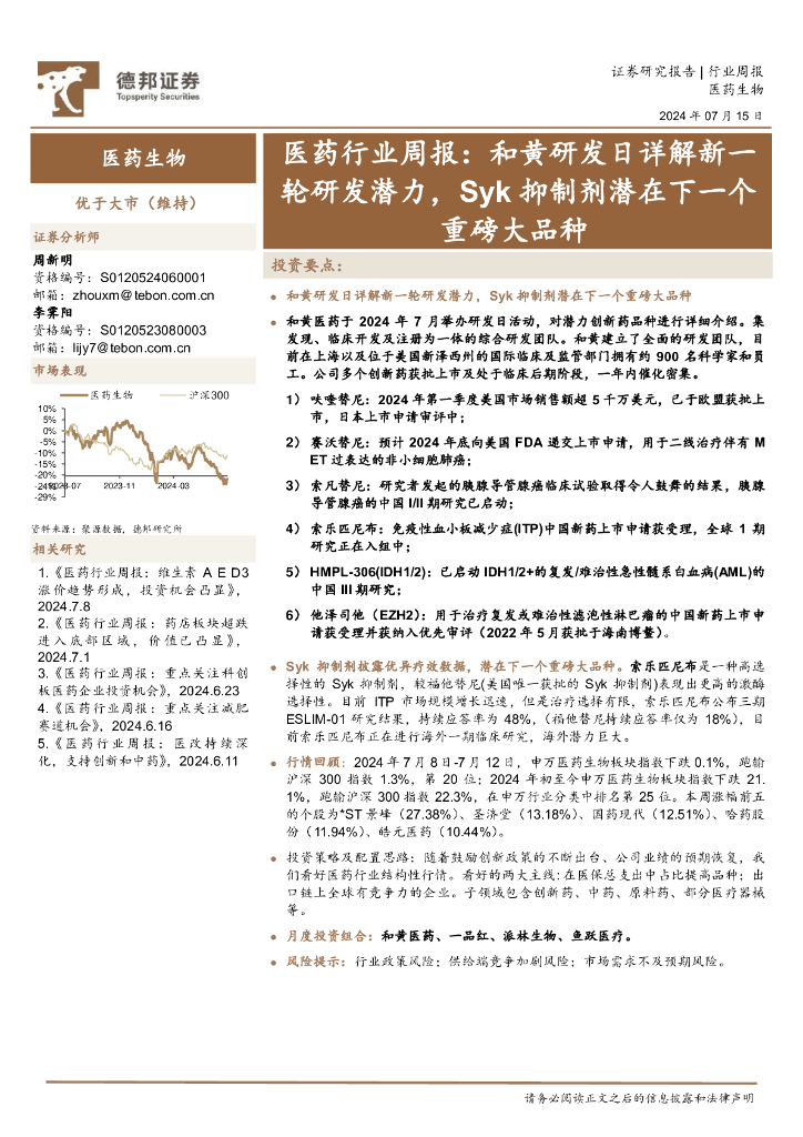 德邦证券:医药行业周报:和黄研发日详解新一轮研发潜力,Syk抑制剂潜在下一个重磅大品种.pdf