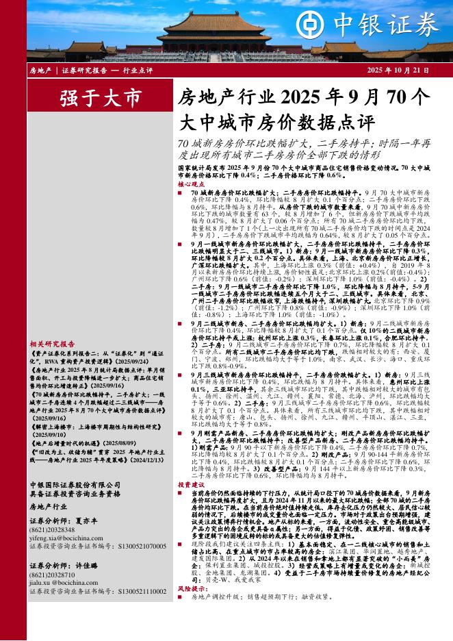 中银证券:房地产行业2025年9月70个大中城市房价数据点评:70城新房房价环比跌幅扩大,二手房持平;时隔一年再度出现所有城市二手房房价全部下跌的情形.pdf
