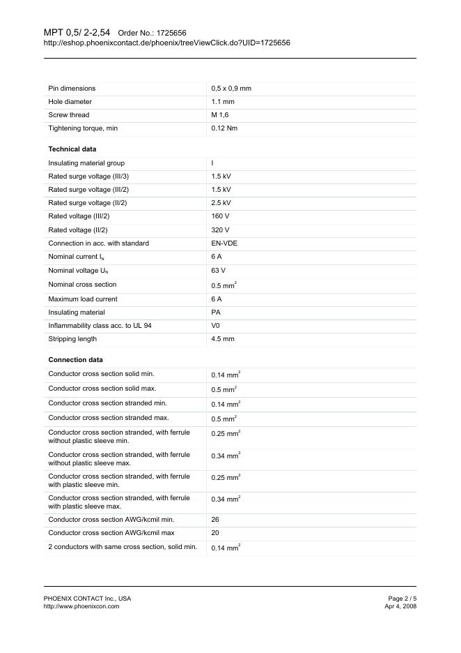 PHOENIX CONTACT -MPT 0,5/ 2-2,54 数据手册.pdf