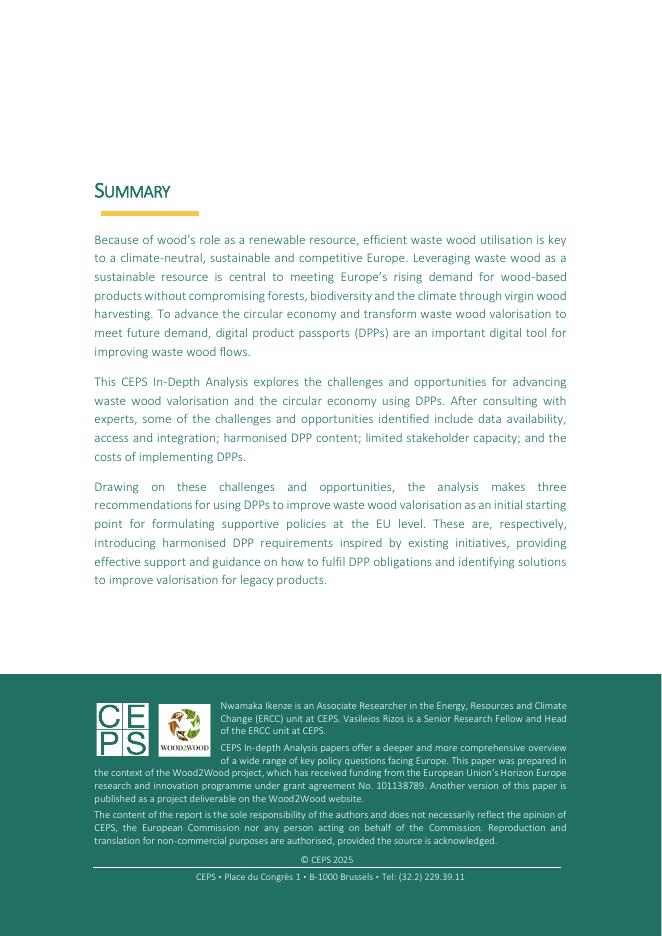 欧洲政策研究中心(CEPS):2025年数字产品护照如何提升欧盟废木的增值和循环利用报告(英文版).pdf
