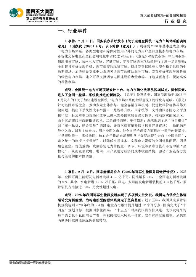 英大证券:电力能源行业周报