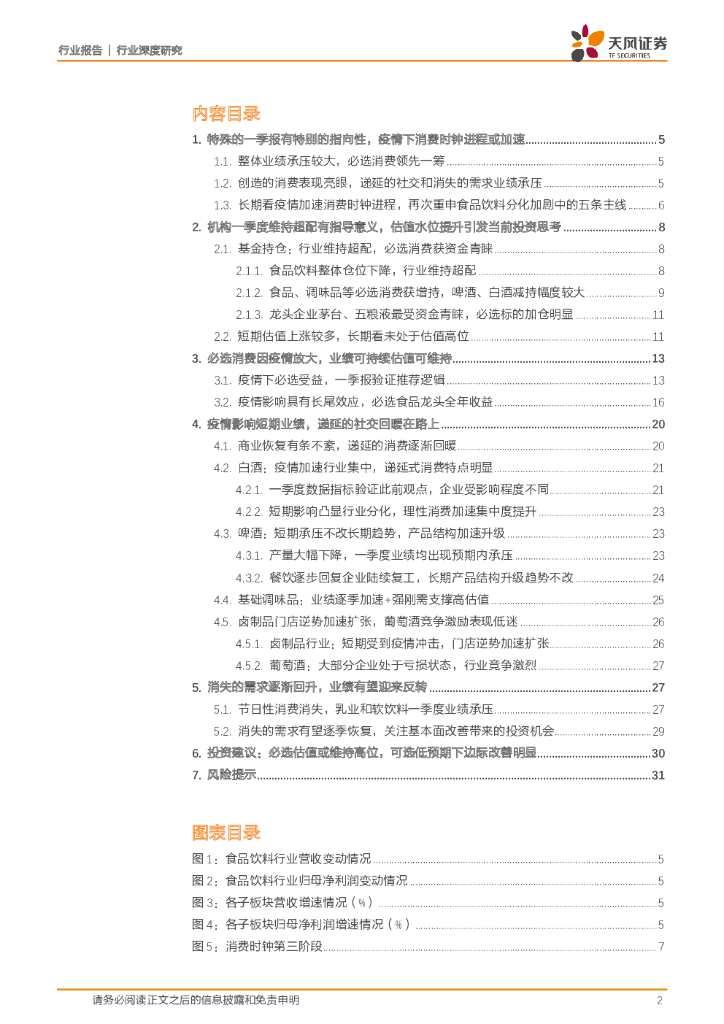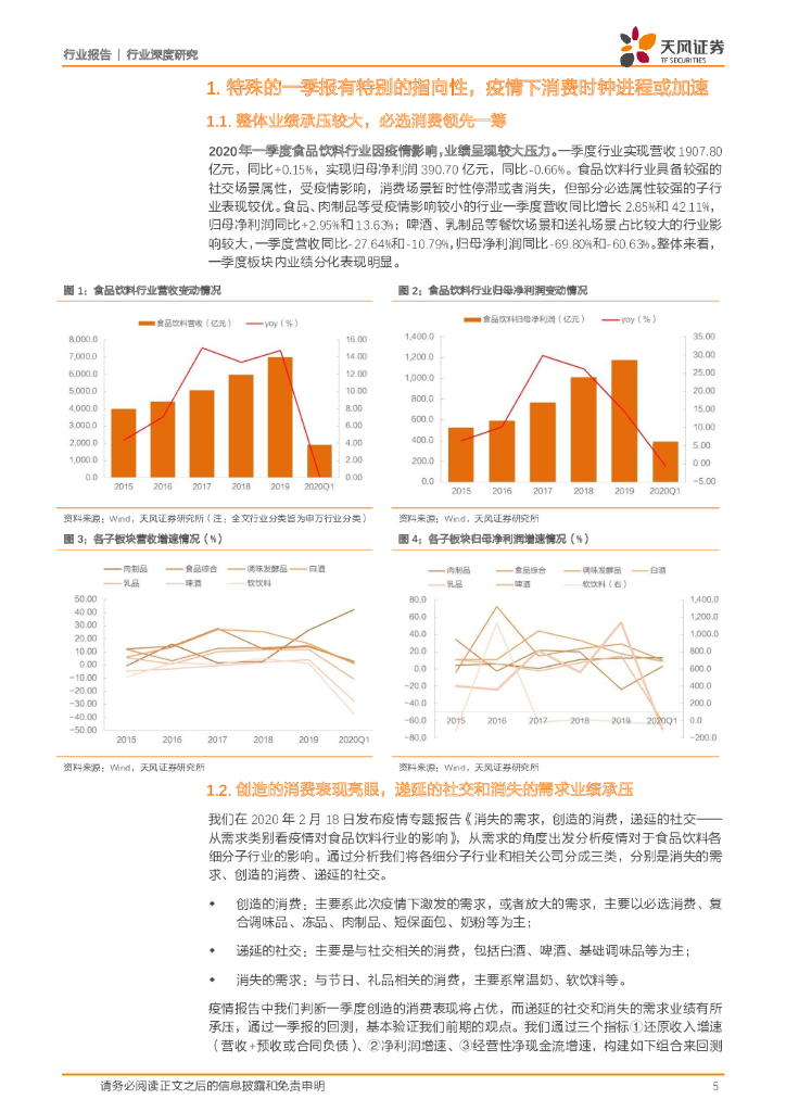 天风证券:食品饮料行业深度研究:疫情专题报告之二-一季报深度解析,暂缓键和加速键的趋势和拐点.pdf