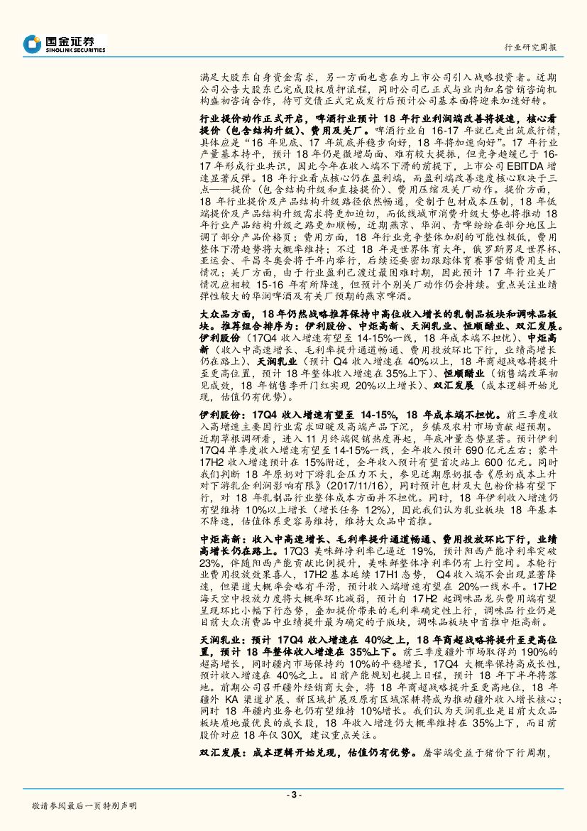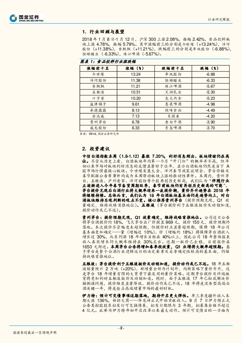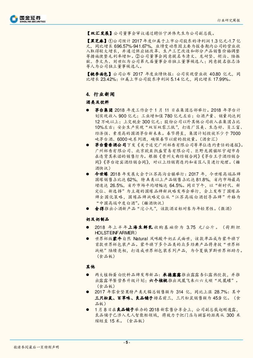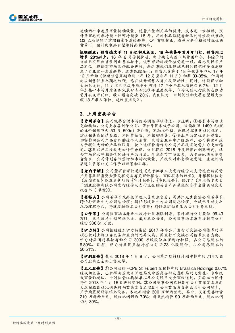 国金证券:食品饮料行业研究周报:近期行业利好消息频发说明量价齐升仍是白酒行业18年发展主逻辑.pdf