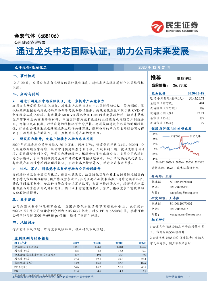 民生证券:金宏气体(688106)-通过龙头中芯国际认证,助力公司未来发展.pdf