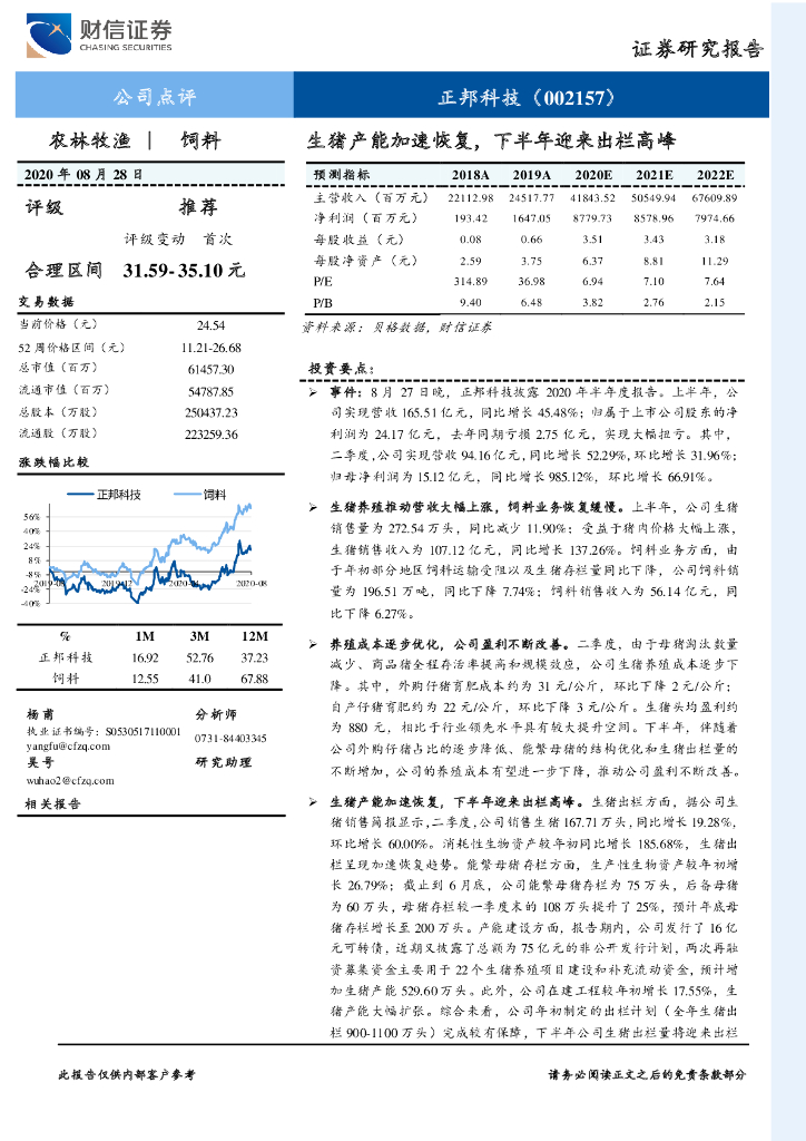 财信证券:正邦科技(002157)-生猪产能加速恢复,下半年迎来出栏高峰.pdf