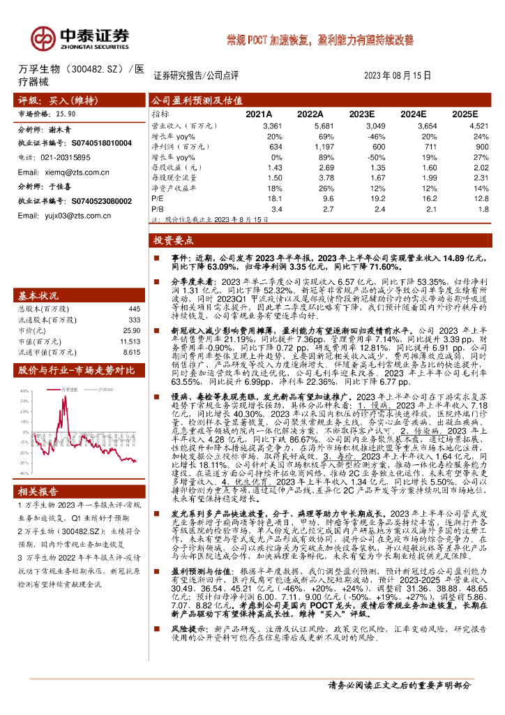 中泰证券:万孚生物(300482)-常规POCT加速恢复,盈利能力有望持续改善.pdf