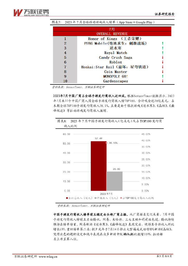 万联证券:传媒行业跟踪报告:7月游戏市场增长显著,头部新游表现突出.pdf