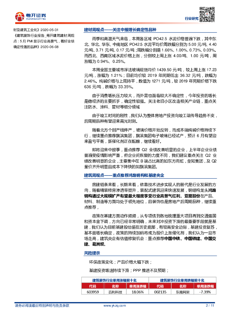 粤开证券:建筑建材周观点:关注Q2业绩改善明显的品种如鸿路钢构、东方雨虹、旗滨集团等.pdf