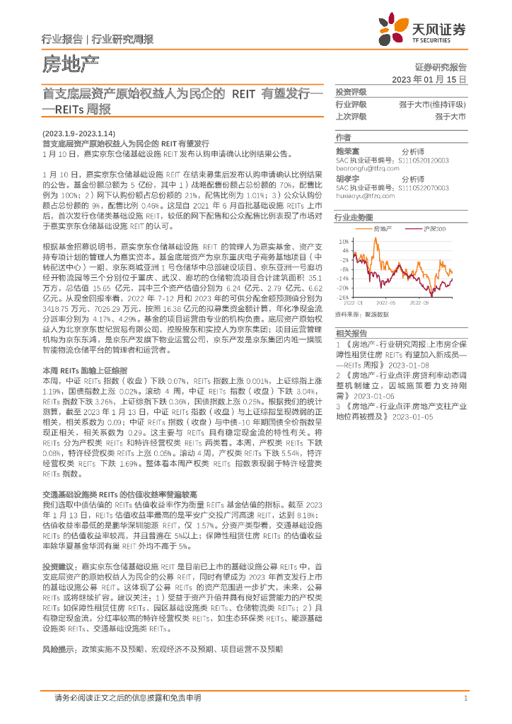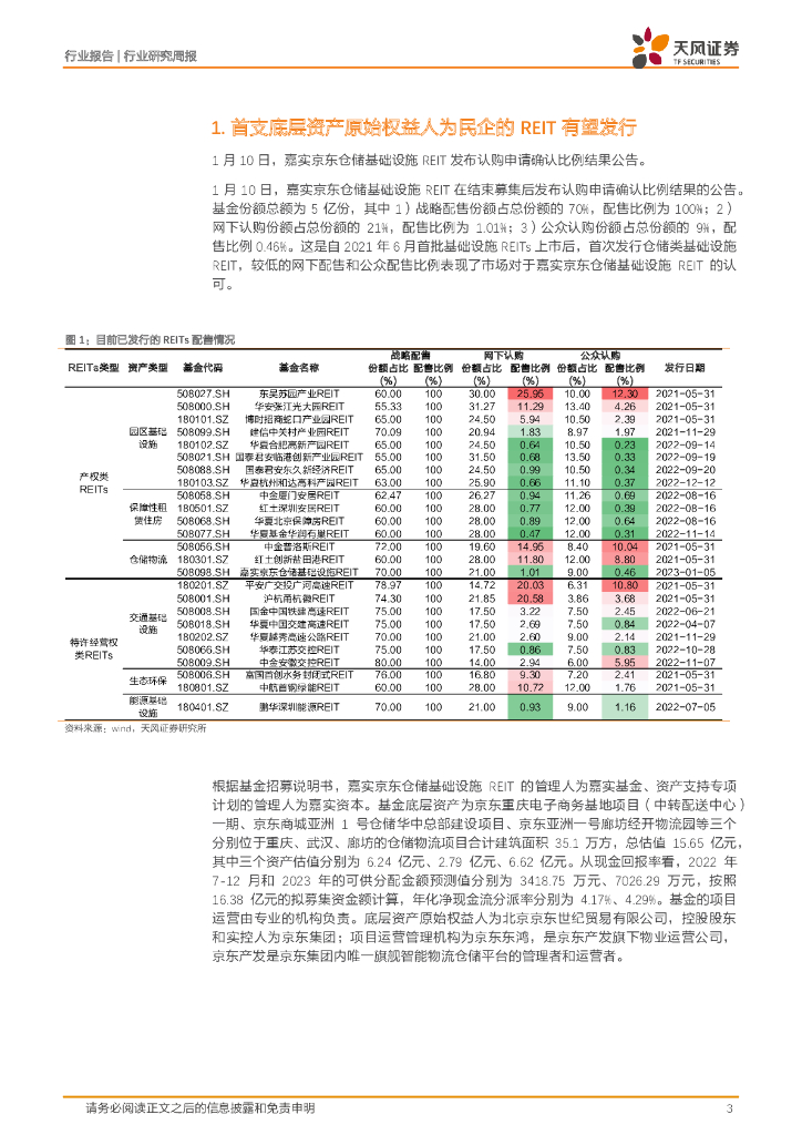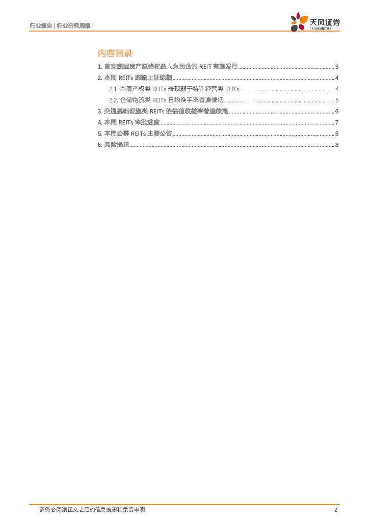 天风证券:房地产REITs周报:首支底层资产原始权益人为民企的REIT有望发行.pdf