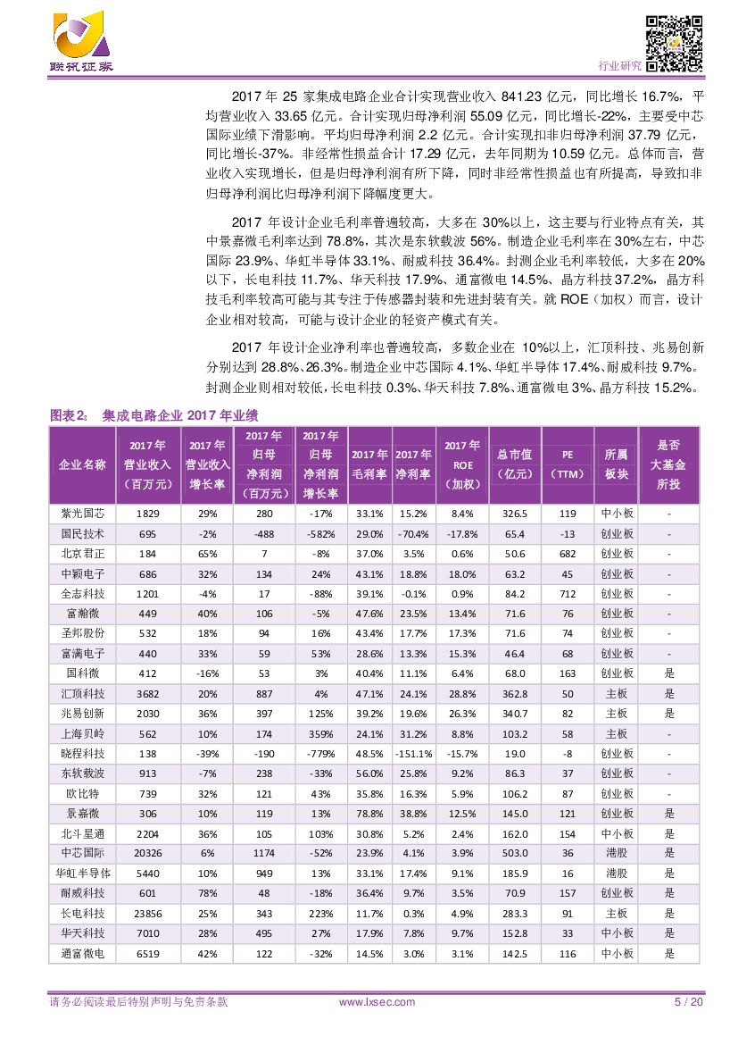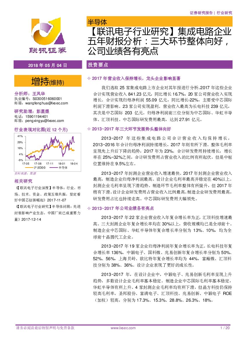 联讯证券:【联讯电子行业研究】 集成电路企业五年财报分析:三大环节整体向好,公司业绩各有亮点.pdf