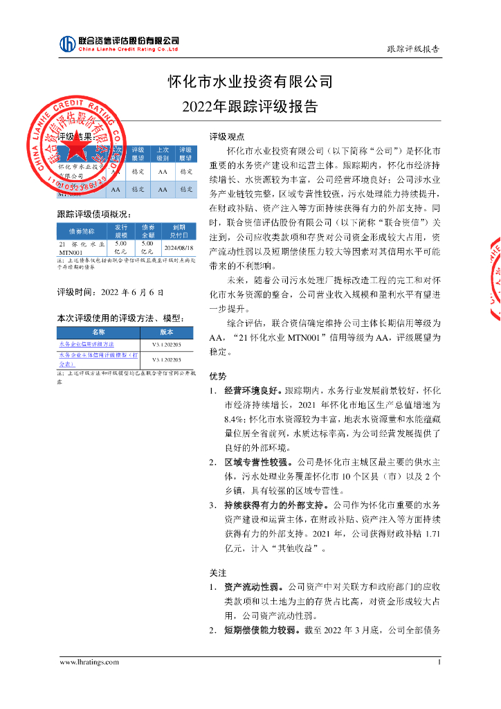 联合资信:怀化市水业投资有限公司2022年跟踪评级报告.pdf