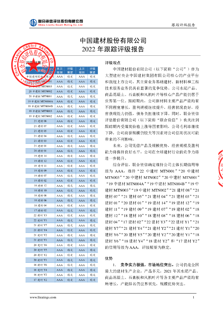 联合资信:中国建材股份有限公司2022年跟踪评级报告.pdf