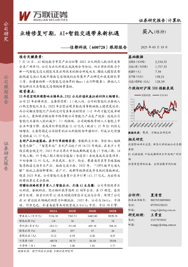 万联证券:佳都科技(600728)-跟踪报告:业绩修复可期,AI+智能交通带来新机遇.pdf