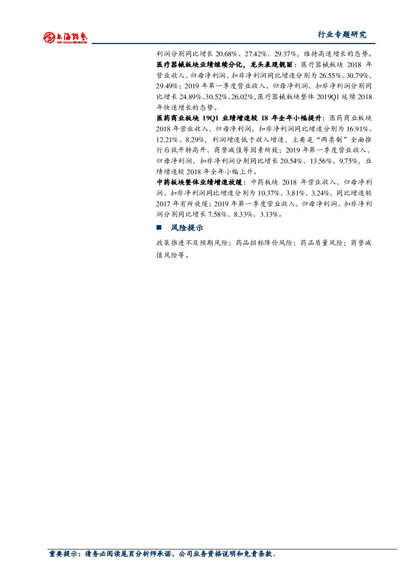上海证券:医药行业2018年年报及2019年一季报总结:行业增速同比有所放缓 细分领域龙头业绩表现靓丽.pdf