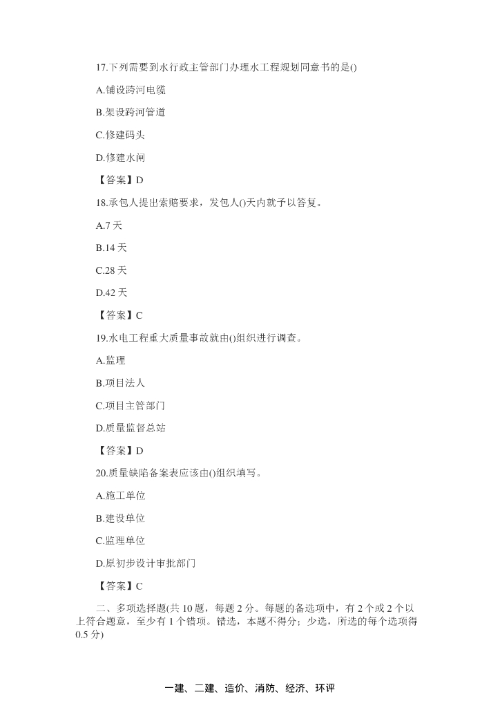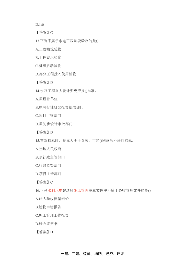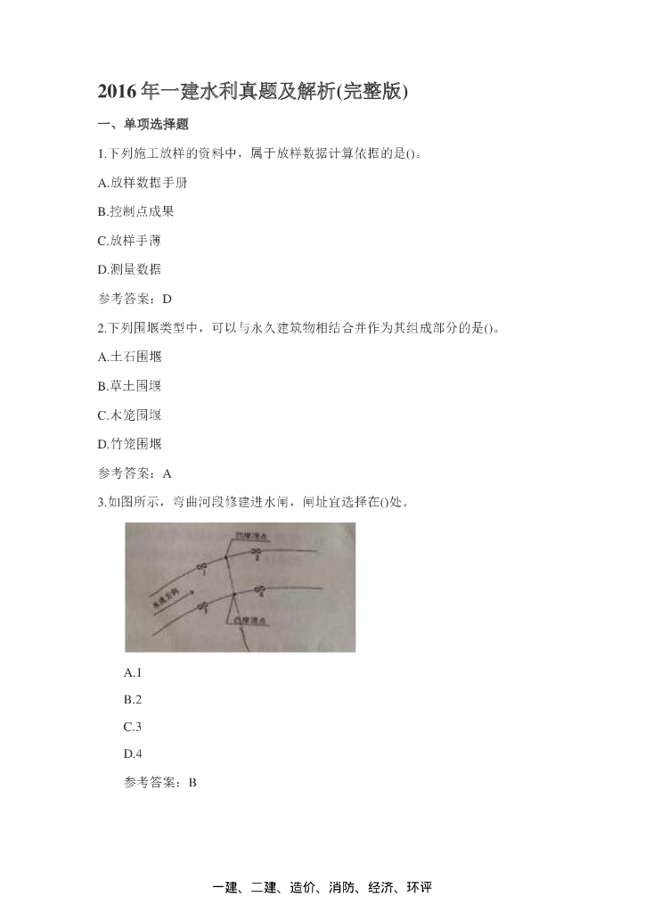 2016年一级建造师水利水电实务真题(附答案).pdf