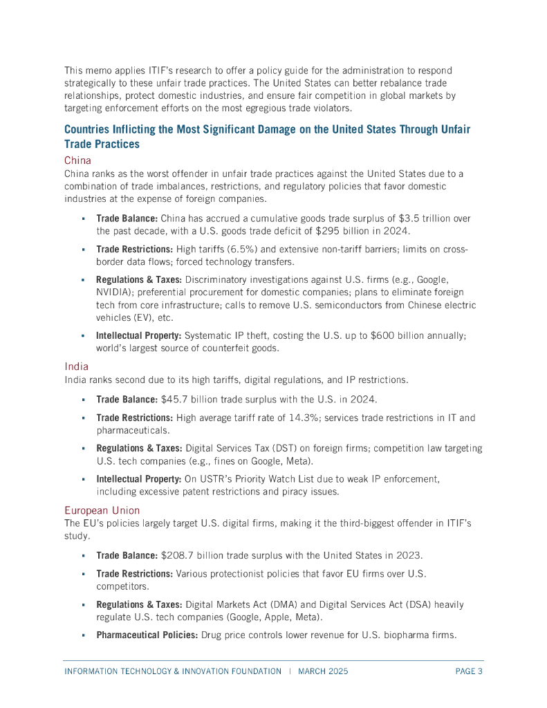 ITIF:2025年有关特朗普总统美国第一贸易政策的美国贸易代表的备忘录报告(英文版).pdf