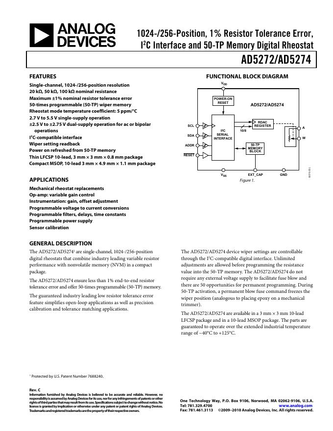 ANALOG DEVICES AD5272/AD5274 数据手册.pdf