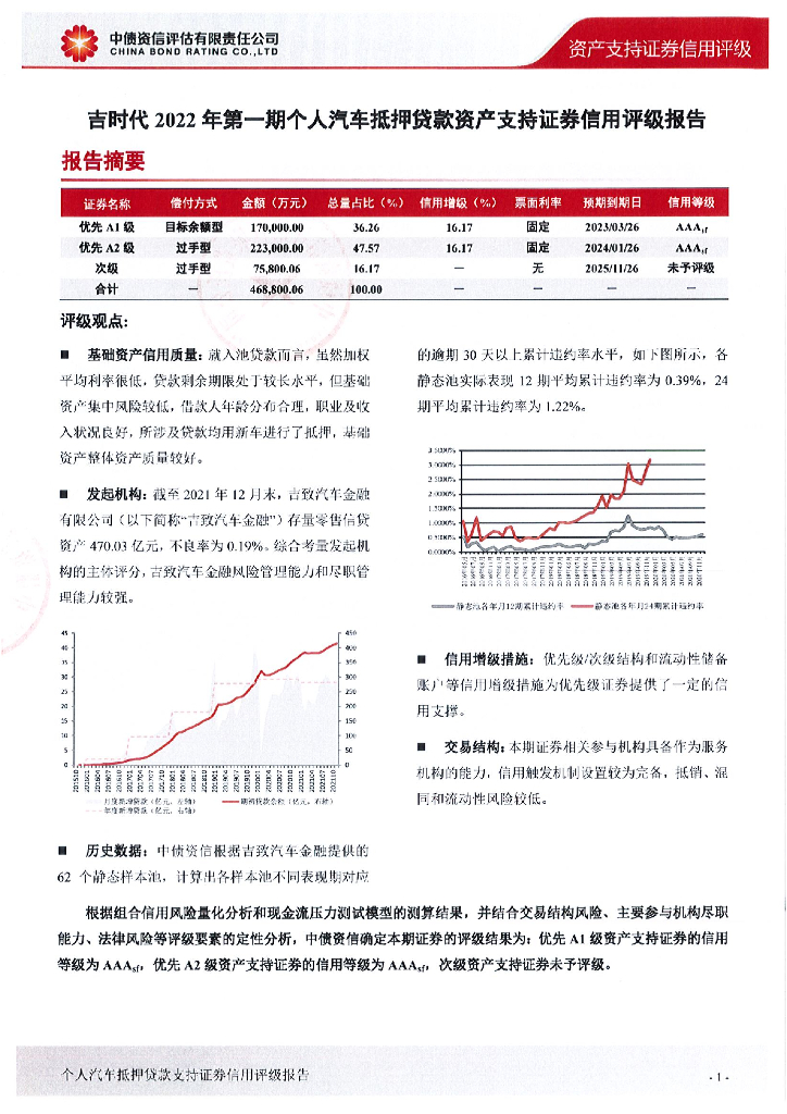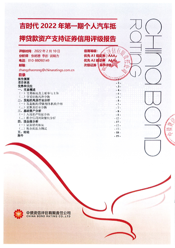 中债资信:吉时代2022年第一期个人汽车抵押贷款资产支持证券信用评级报告及跟踪评级安排.pdf