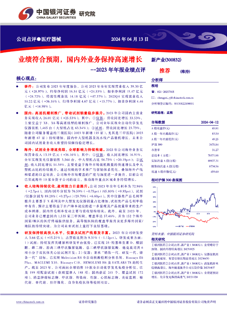中国银河:新产业(300832)-2023年年报业绩点评:公司点评●医疗器械业绩符合预期,国内外业务保持高速增长.pdf