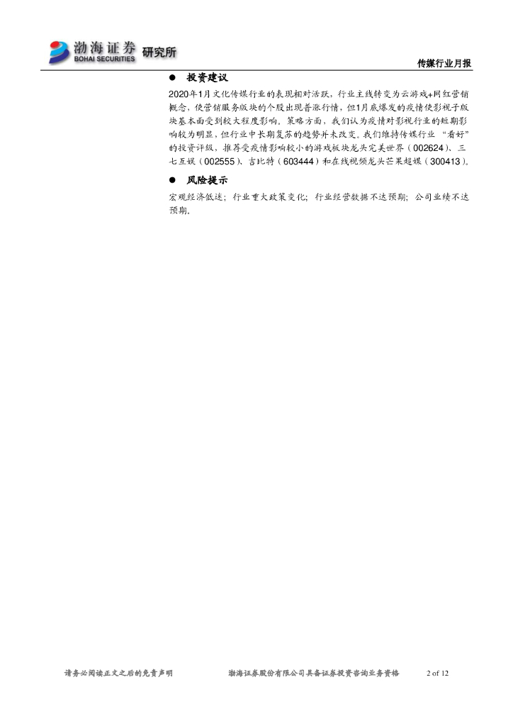渤海证券:传媒行业月报:影视板块受到阶段性影响,关注线上娱乐端.pdf