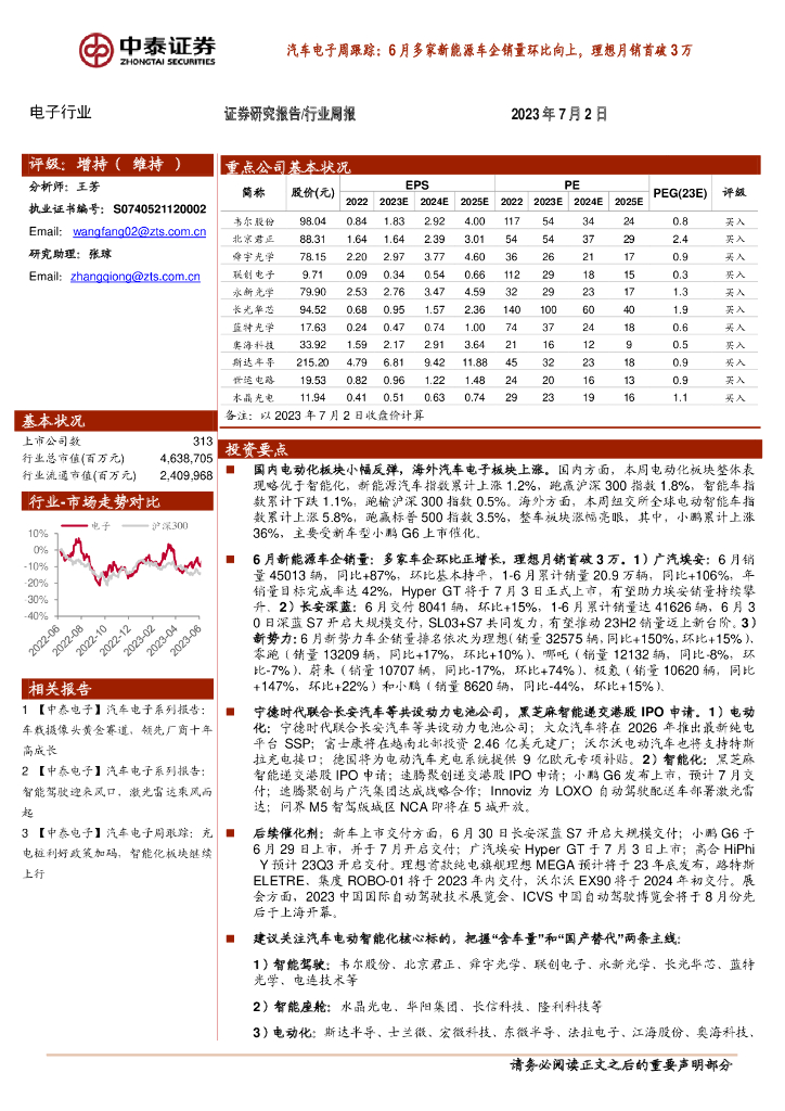 中泰证券:汽车电子周跟踪:6月多家新能源车企销量环比向上,理想月销首破3万.pdf