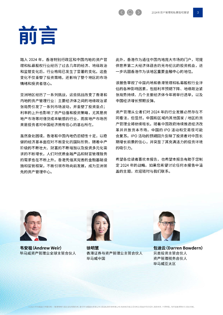 1、打开文档需要使用基本的办公软件,如Word、Office、WPS、Pdf、Cad、Rar、Zip等。 2、如遇下载失败、解压失败、文档缺失等问题,请通过【反馈】按钮提交。毕马威:2024年资产管理和私募股权展望报告.pdf