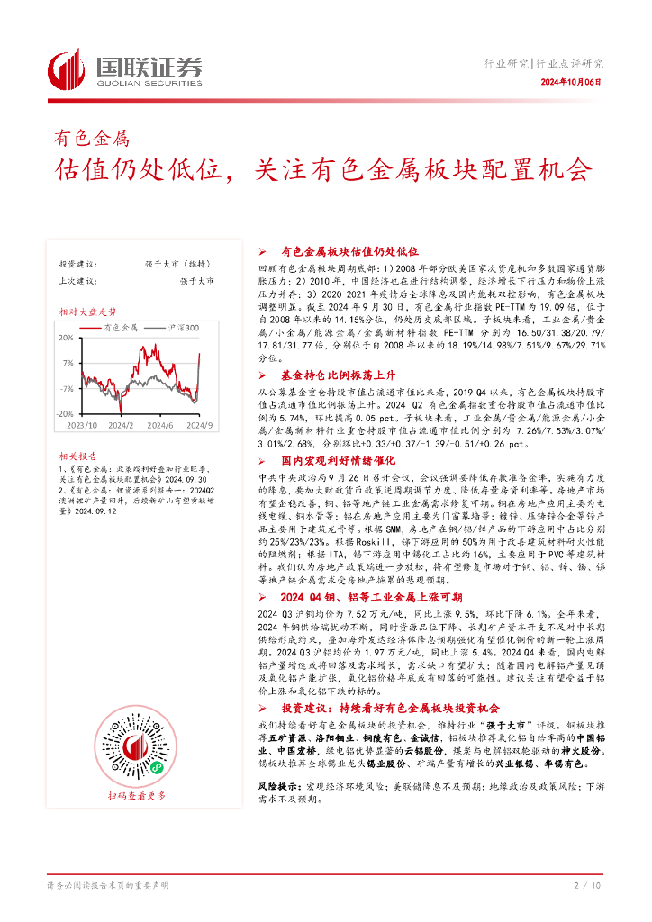 国联证券:有色金属:估值仍处低位,关注有色金属板块配置机会.pdf