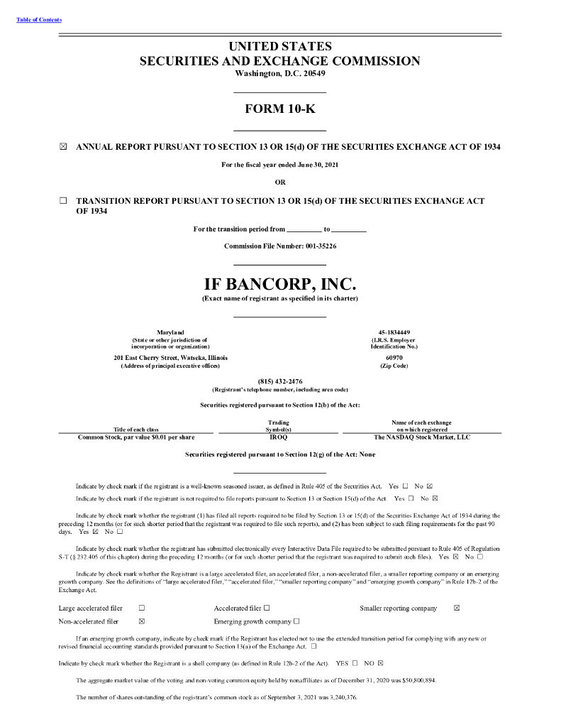 IF Bancorp, Inc.(IROQ)2021财年年度报告(英文版).pdf