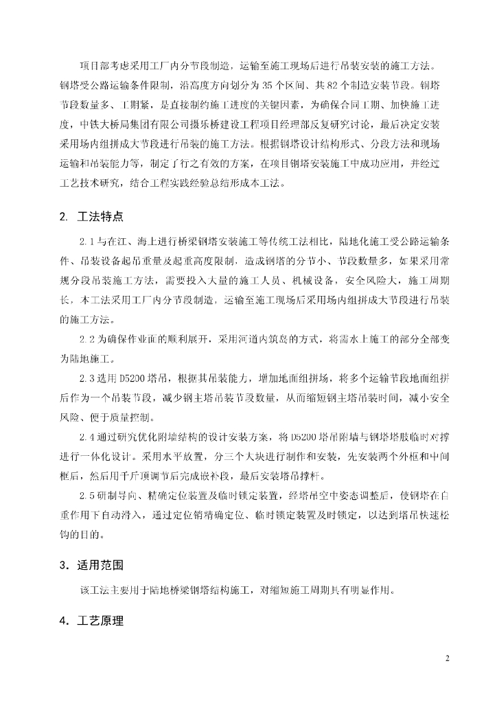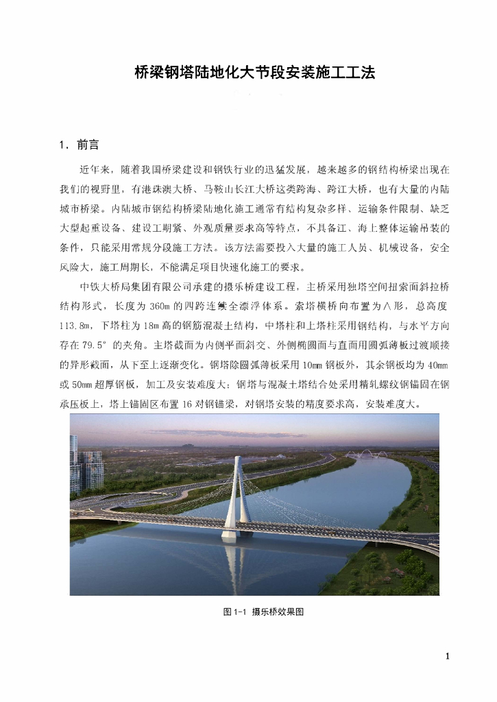 桥梁钢塔陆地化大节段安装施工工法26页.pdf