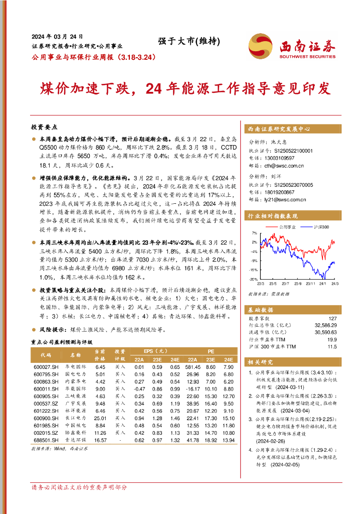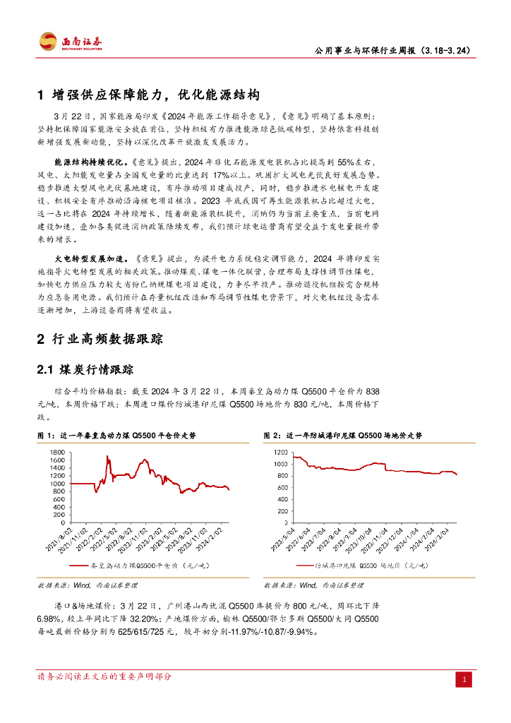 西南证券:公用事业与环保行业周报:煤价加速下跌,24年能源工作指导意见印发.pdf