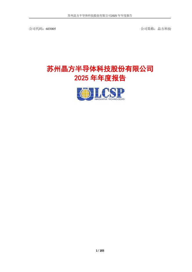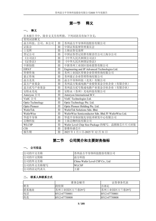 603005-晶方科技:晶方科技2025年年度报告.pdf