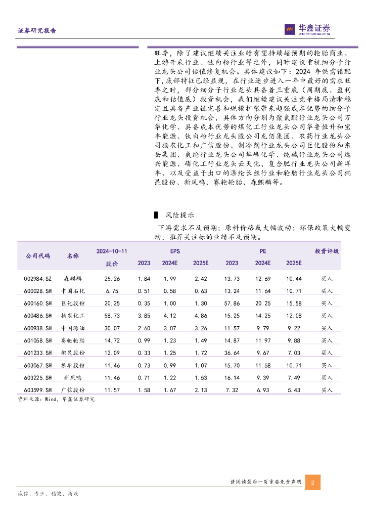 华鑫证券:基础化工行业周报:PX、涤纶POY等涨幅居前,建议继续关注石化板块、钛白粉板块和轮胎板块.pdf