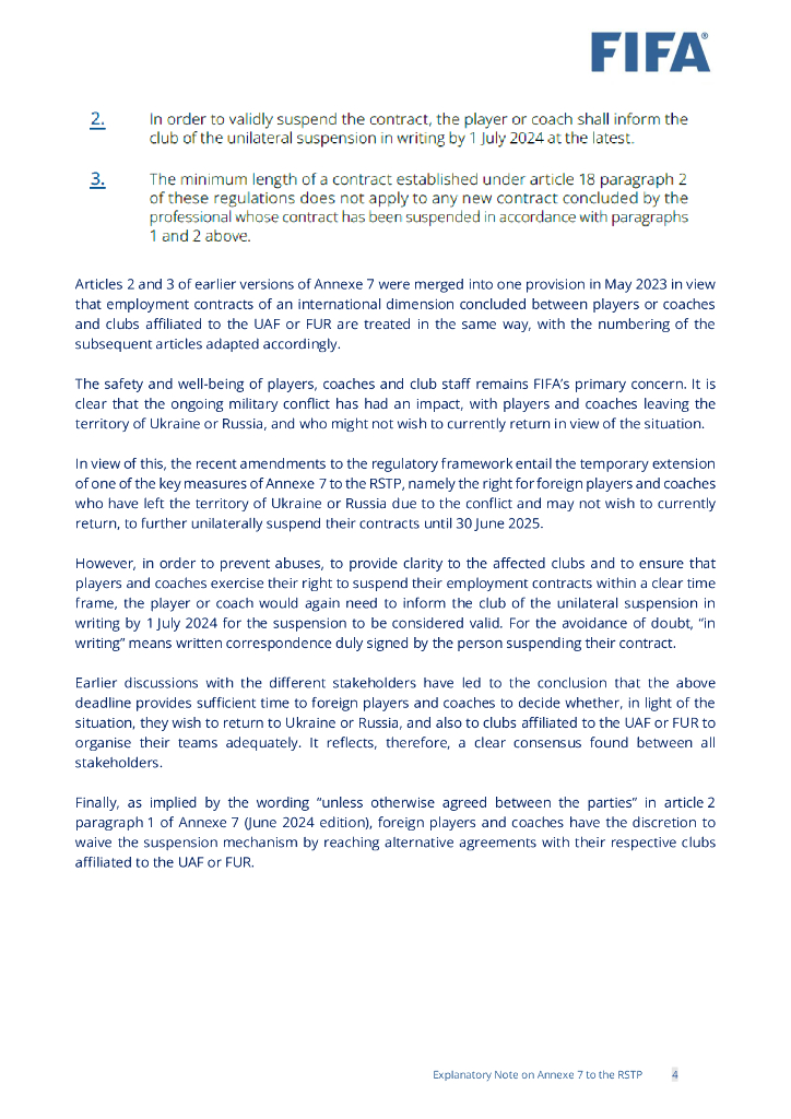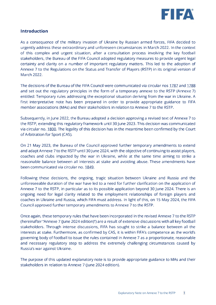 国际足联(FIFA):2024年关于《球员地位及转会规例》附件七的解释性说明报告(英文版).pdf