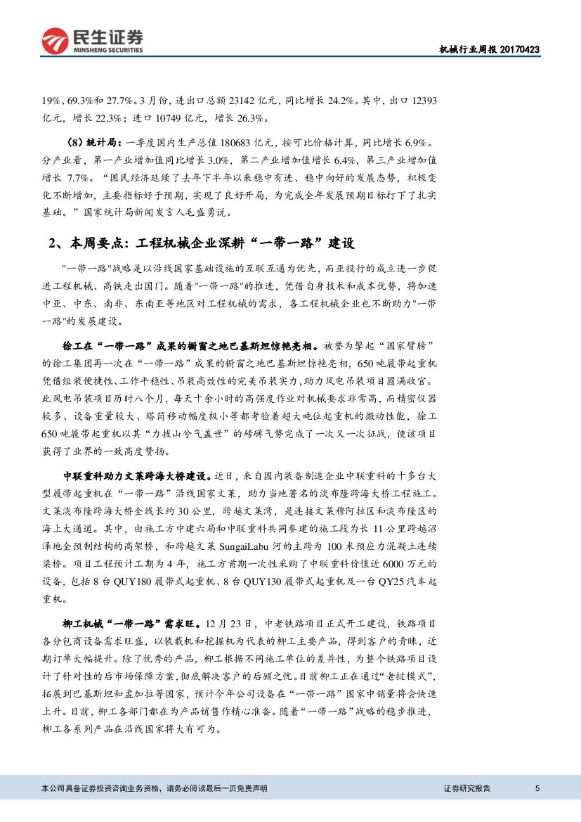民生证券:机械行业动态报告:工程机械企业深耕“一带一路”建设.pdf