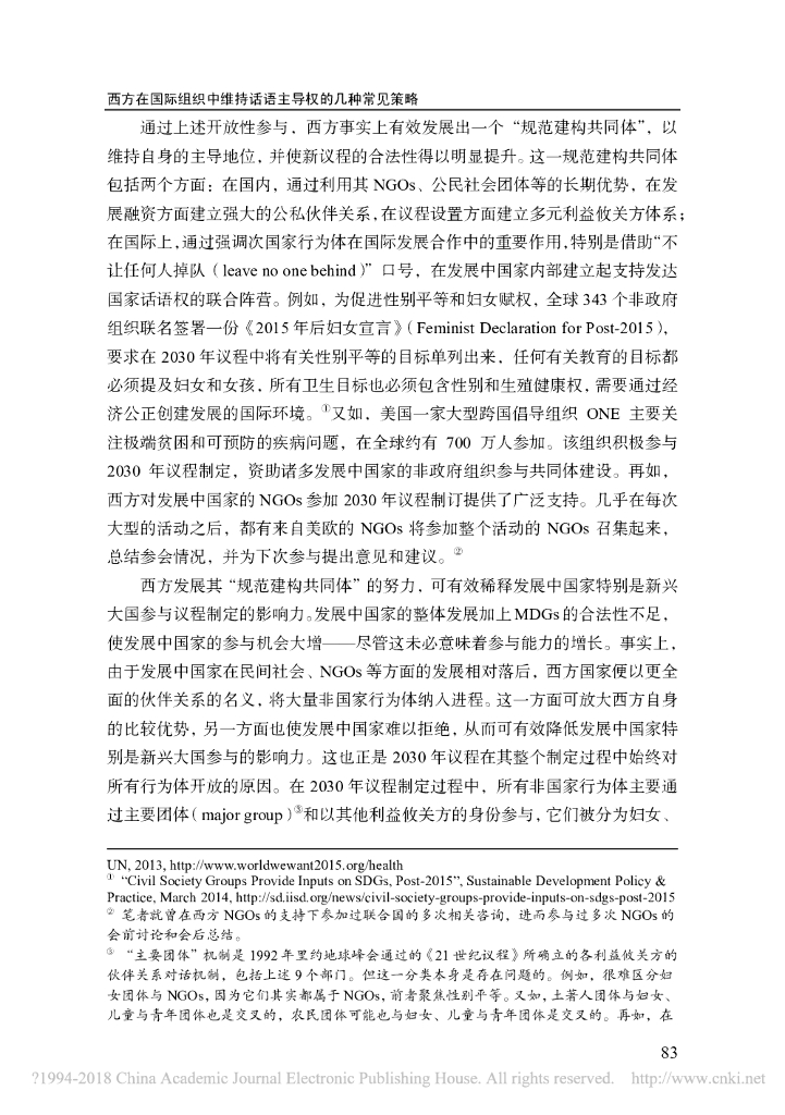 西方在国际组织中维持话语主导权的几种常见策略——以联合国2030年议程制定中的门槛管理为例简.pdf