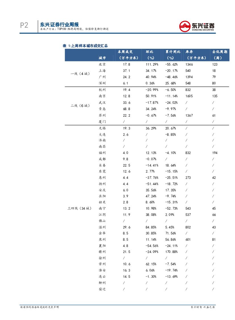 东兴证券:房地产行业周报:TOP100维持高增速,估值修复渐行渐近.pdf