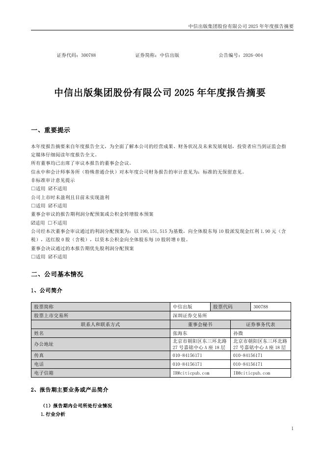 300788-中信出版:2025年年度报告摘要.pdf