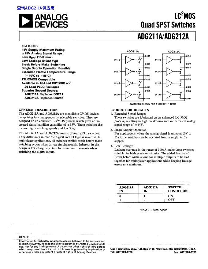 ANALOG DEVICES ADG211A/ADG212A 数据手册.pdf