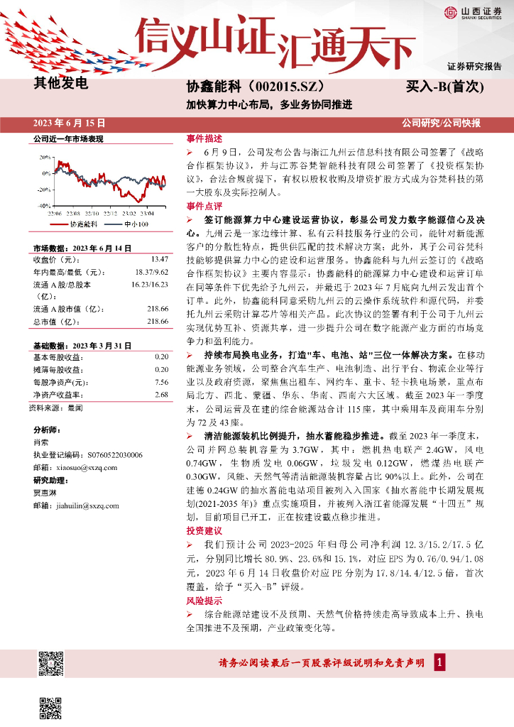 山西证券:协鑫能科(002015)-加快算力中心布局,多业务协同推进.pdf