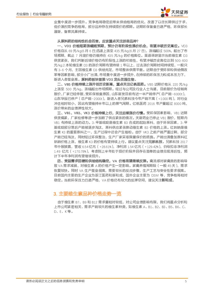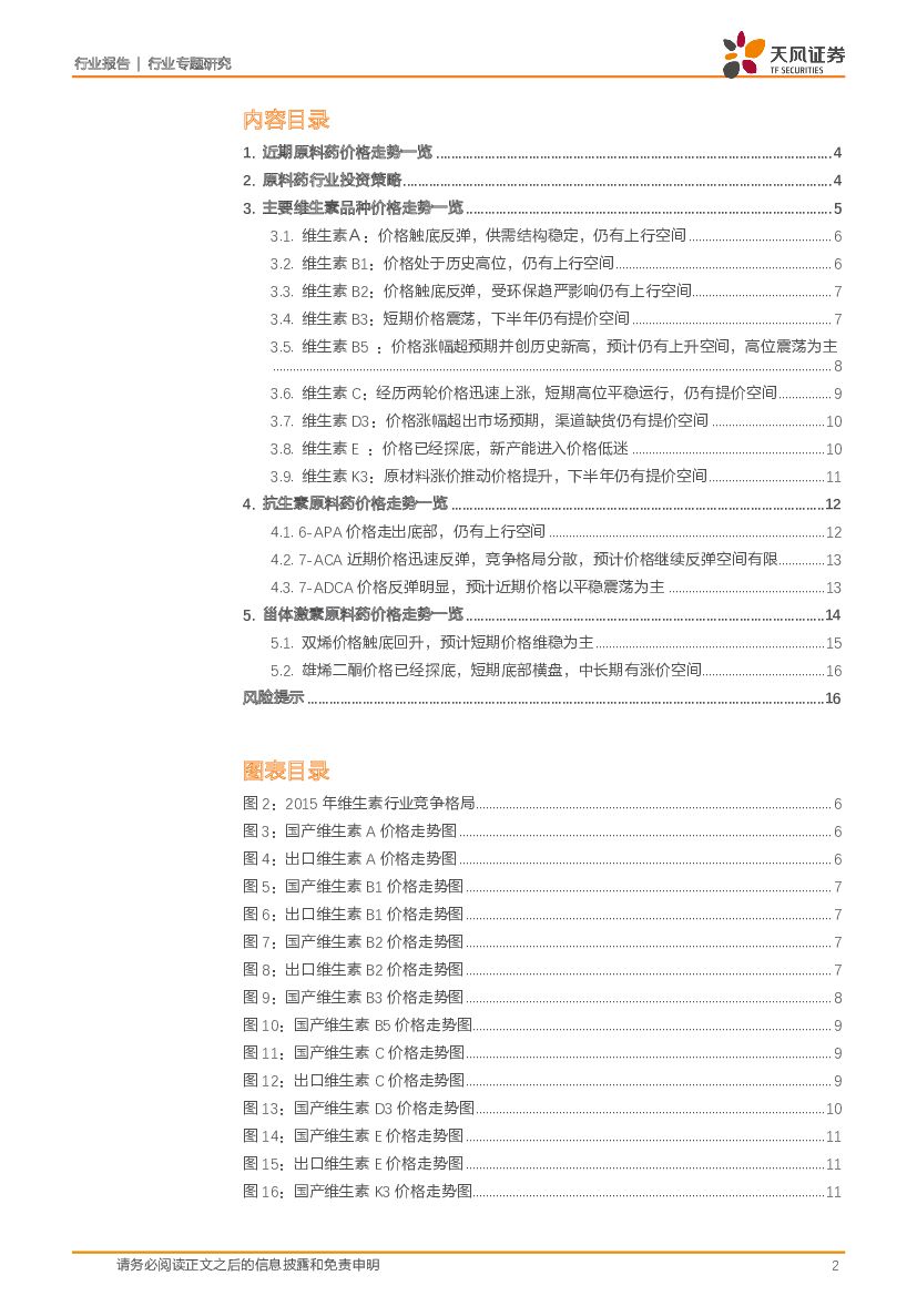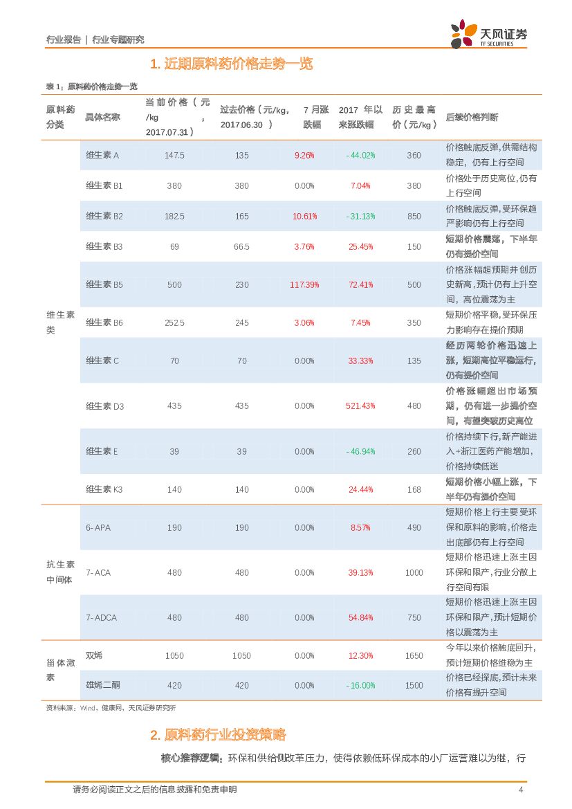 天风证券:医药生物行业专题研究:原料药7月月报-VD3、VB5涨价超预期,VA、VB1、VB3、VK3等仍有提价预期,重点关注花园生物、亿帆医药、兄弟科技和新和成.pdf