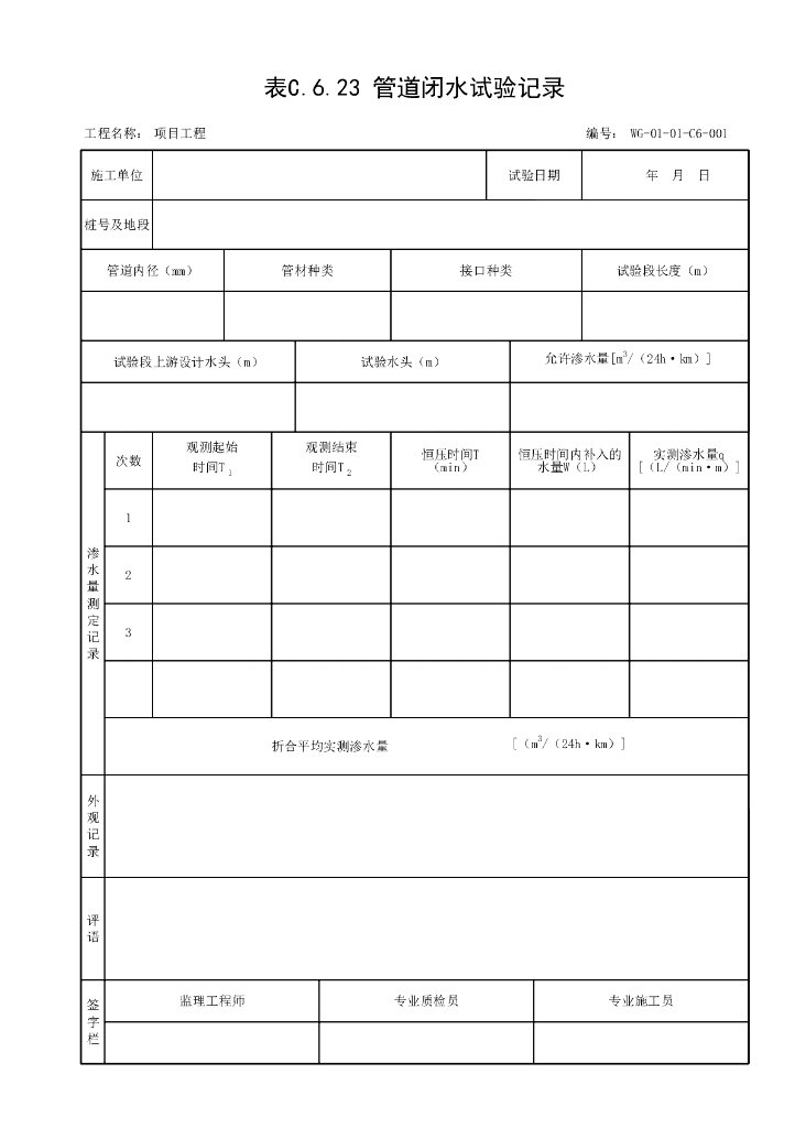 贵州省市政给水排水管道工程试验记录用表.pdf
