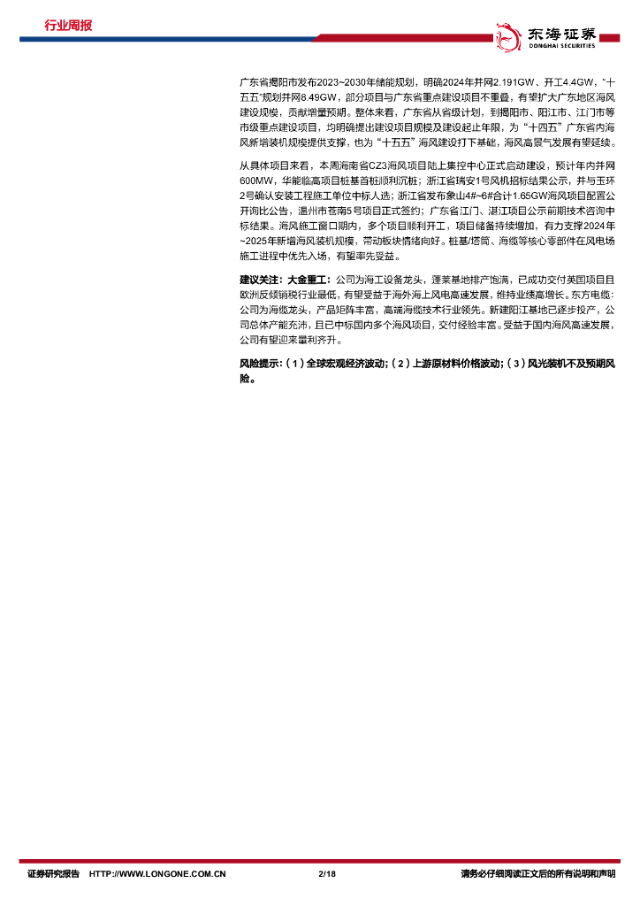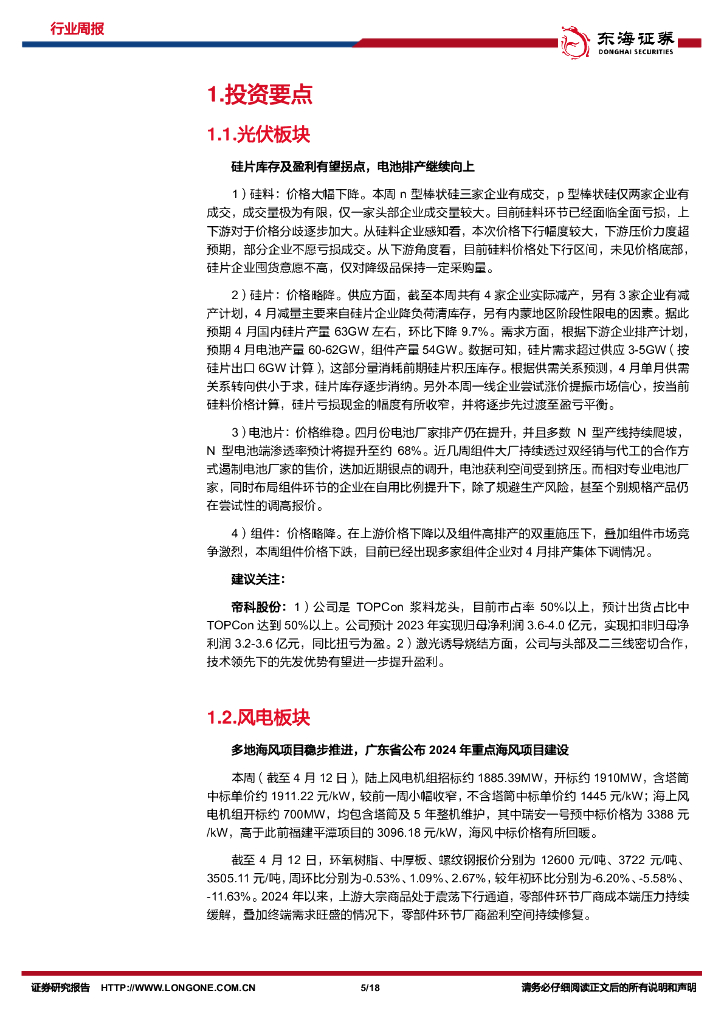 东海证券:新能源电力行业周报:硅片库存及盈利有望拐点,广东省公布2024年重点海风项目建设.pdf