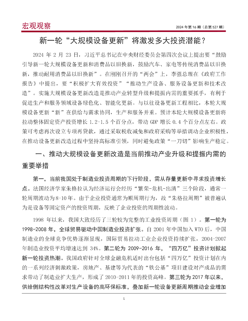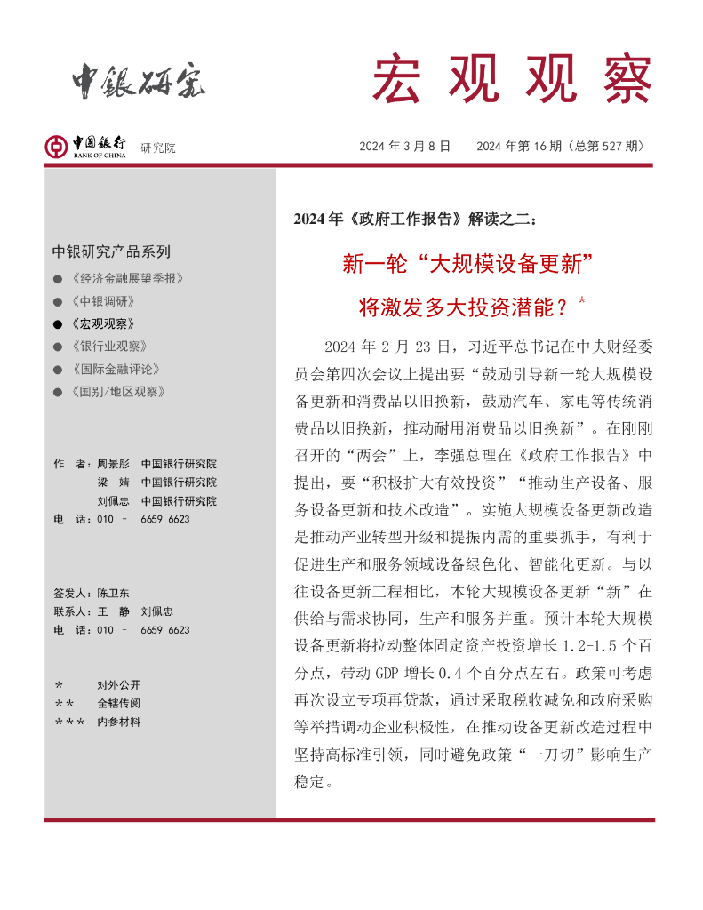 中国银行研究院:《宏观观察》2024年第16期:新一轮“大规模设备更新”将激发多大投资潜能?.pdf