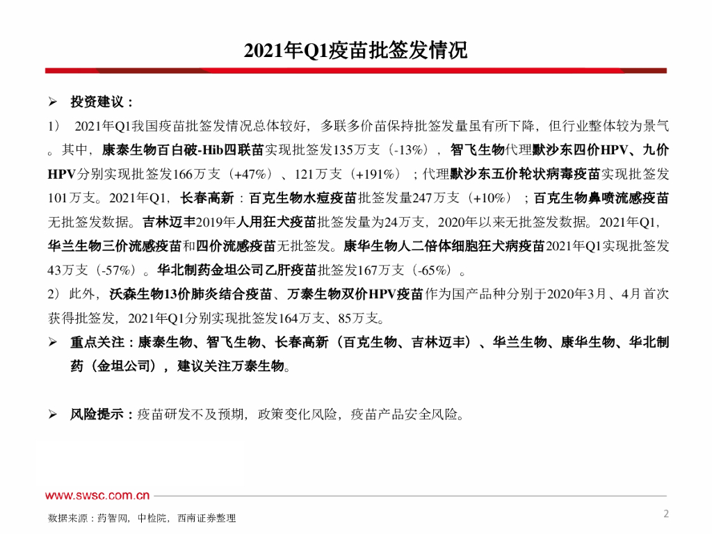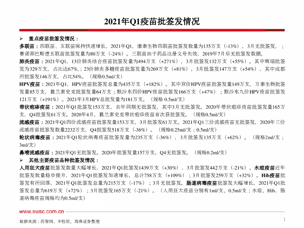 西南证券:医药行业:2021年Q1疫苗批签发:多数重磅品种保持较快增长.pdf