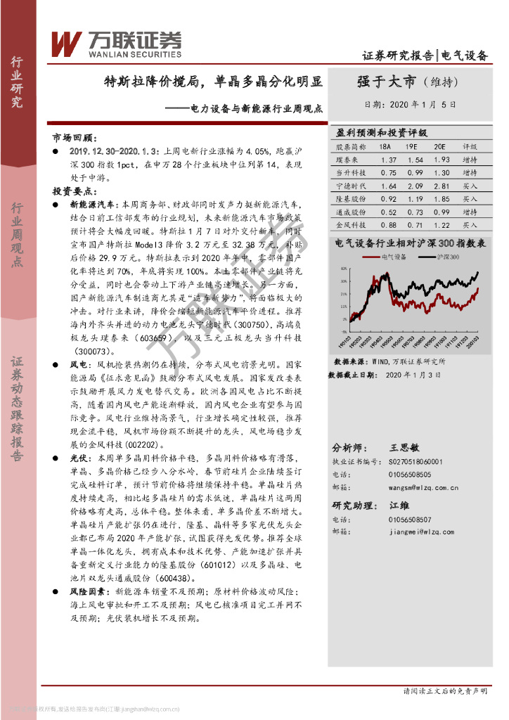 万联证券:电力设备与新能源行业周观点:特斯拉降价搅局,单晶多晶分化明显.pdf