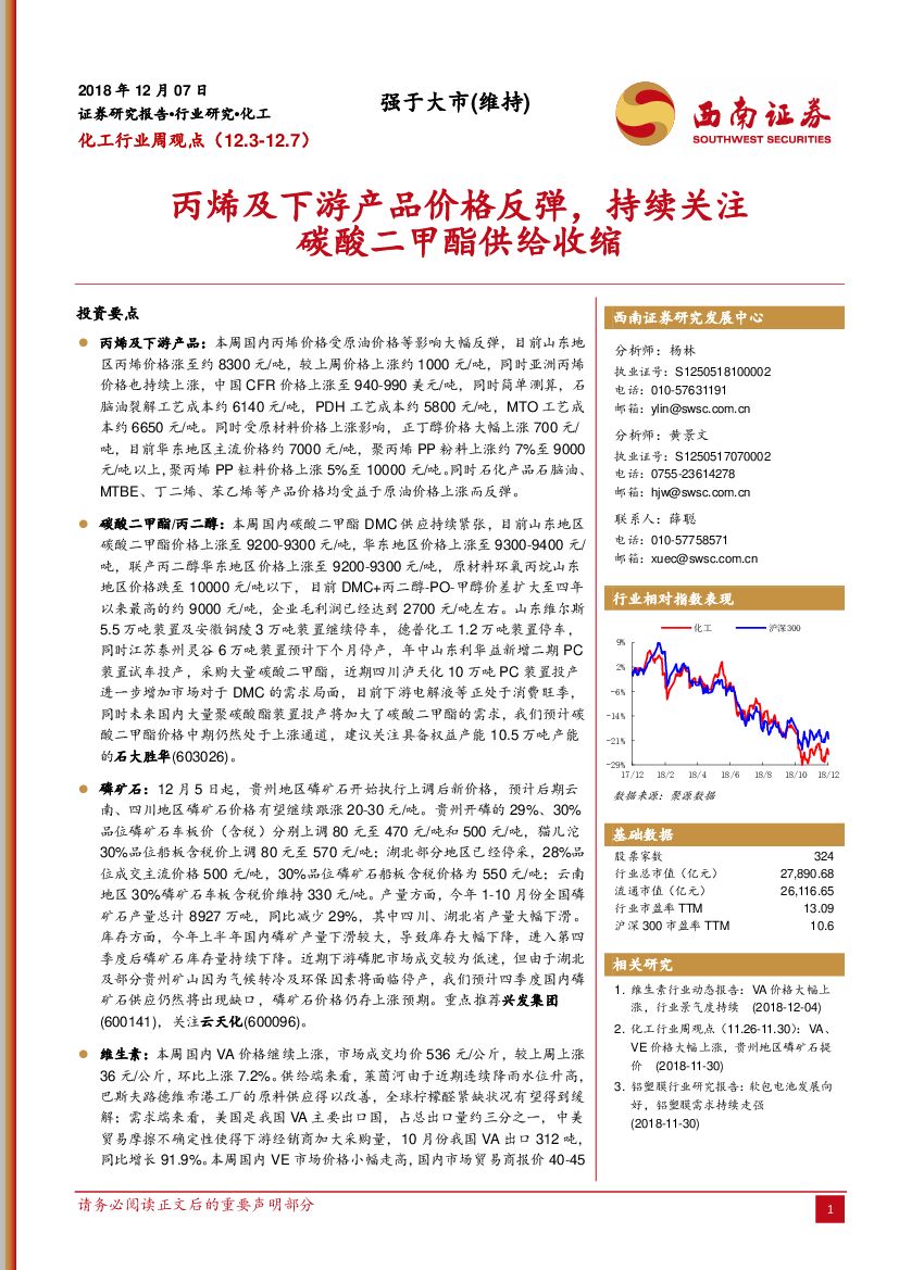 西南证券:化工行业周观点:丙烯及下游产品价格反弹,持续关注碳酸二甲酯供给收缩.pdf