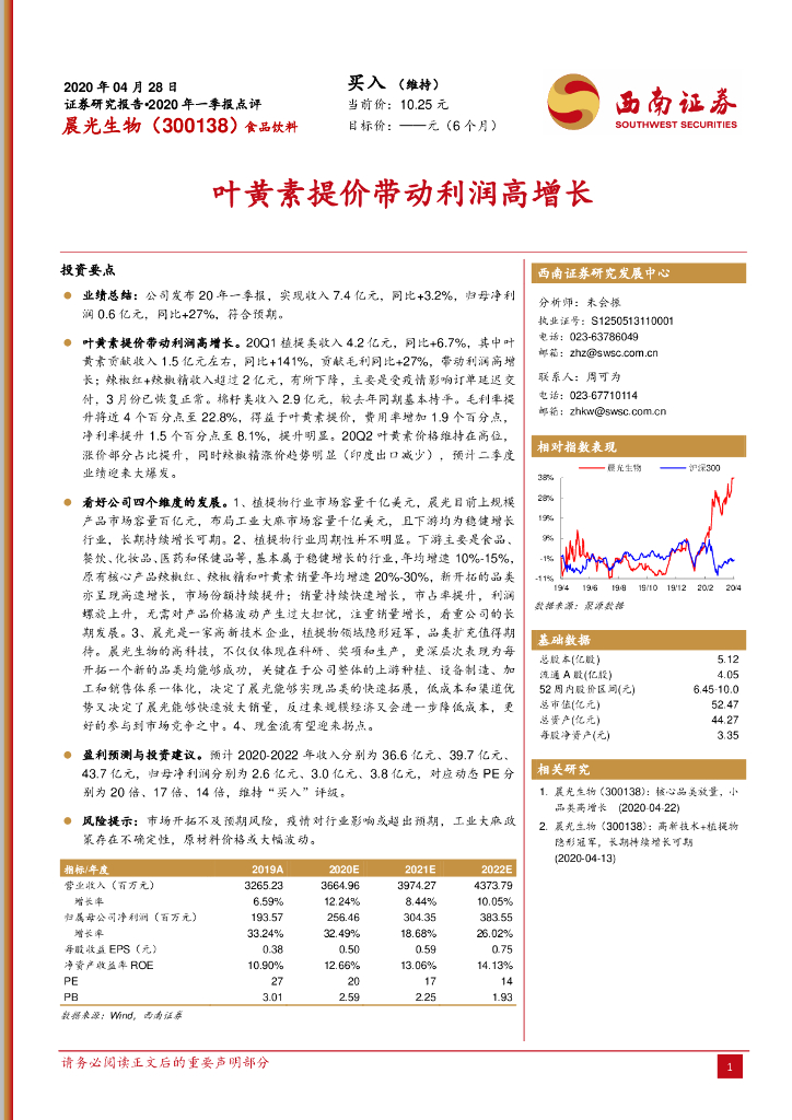 西南证券:晨光生物(300138)-叶黄素提价带动利润高增长.pdf